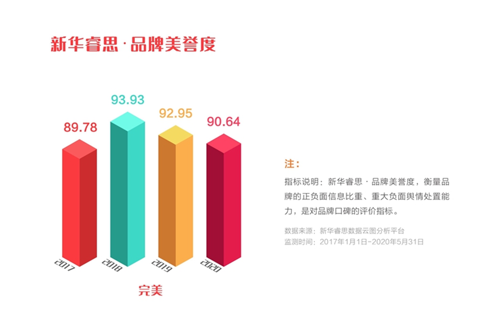 在品牌美誉度方面,新华睿思数据显示,近年来,完美公司不断拓展产品和服务范畴,积极打造集研发、采购、制造、物流、销售、服务于一体的智慧生态平台,致力成为健康美丽服务的卓越提供者,品牌形象及美誉度得到社会各界的积极认可。
