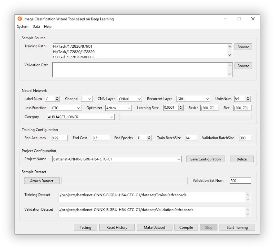 本项目所有配置都是参数化的,不需要改动任何代码,可以直接通过可视化界面操作,训练几乎图片验证码。训练框架界面可以大致划分为几个部分: