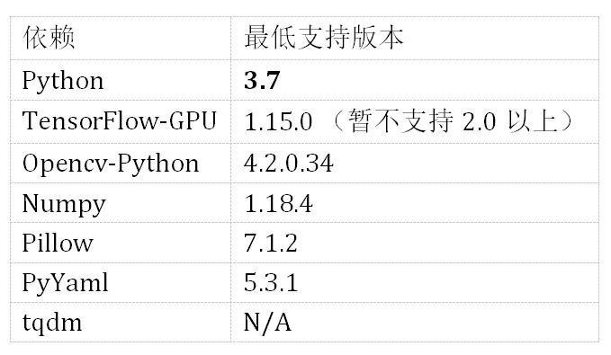 部署服务可以使用 package.py 编译为可执行文件,本文中提供的编译版也是基于 Pyinstaller 打包编译的,编译版不需要考虑更换机器需要重新安装环境,若使用源码部署的话,环境配置同训练项目一样,使用项目中提供的 requirements.txt 一键安装全部依赖,部署服务默认推荐的是 CPU 版的 TensorFlow。
