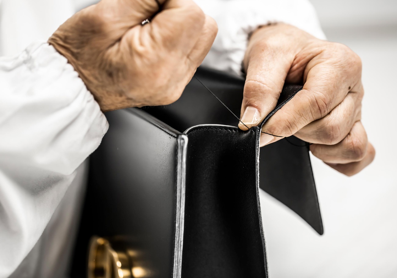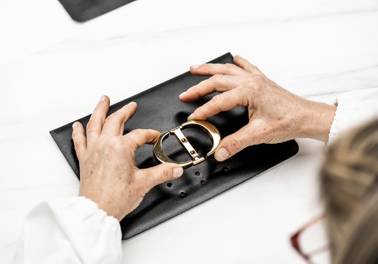我们必须前往位于意大利佛罗伦萨的Dior迪奥皮具工坊,方能对这款黑色皮革手提包的严苛制作流程一探究竟。铬鞣小牛皮质感真实自然,独一无二,突显贵气。它纹理有致,与作为衬里使用的柔软小羊皮相得益彰。这些精美皮革,依照模板剪裁后,再逐片缝合。从包体缝合到热印“Christian Dior”标签,手工艺工匠们认真而仔细地完成工序的每个步骤。