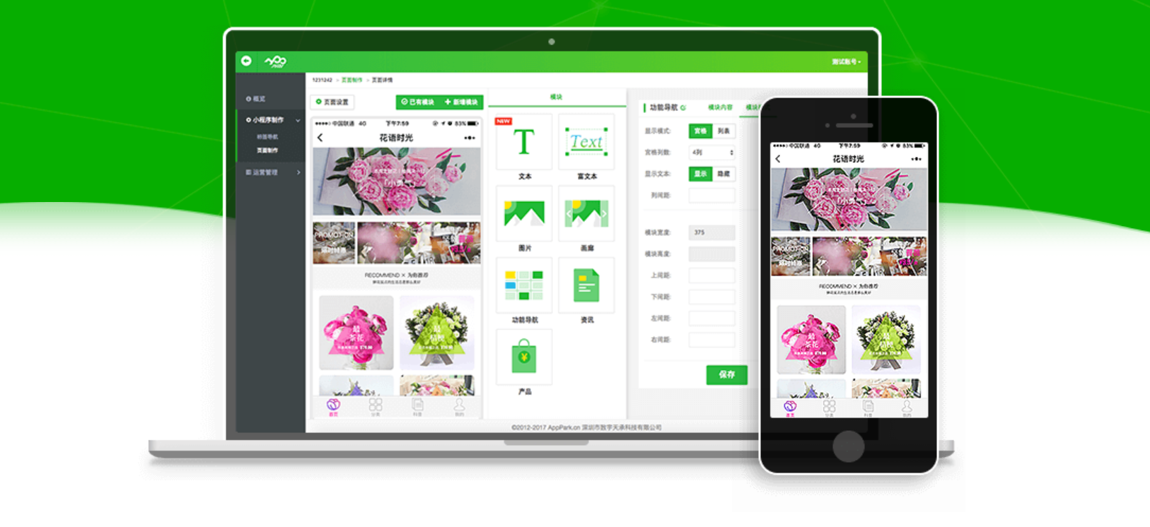 这是一个基本涵盖各种实用场景的小程序制作平台,包括销售管理、电商、餐饮、酒店管理、服务预约、文章阅读、展示、门店等等。技术上没什么问题,小程序的打开和访问都很稳定流畅。对新手也特别友好,上手真是巨巨巨简单,没有任何操作难度,零基础小白也完全。后台是可视化操作,只需添加编辑各种版块就行了。如果你需要展示或上架的东西不多,基本十几分钟就能发布一个自己的小程序。