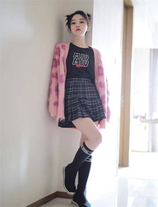 最近冯提莫一张居家写真曝光,照片中的冯提莫身穿一件粉色长毛衣,稍微长出的衣摆直接当成裙子,自然是把冯提莫的腿完全秀了出来。