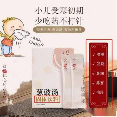 在某款“葱豉汤固体饮料”产品的宣传海报上,标注预防、治疗喷嚏、发烧、鼻涕等症状,或暗示其预防、治疗作用。而GB7718明确规定规定,不应标注或者暗示具有预防、治疗疾病作用的内容,非保健食品不得明示或者暗示具有保健作用。