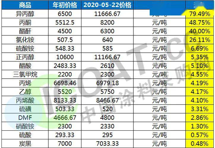 2020年已几近过半,目前来看化工原材料较去年同期数据和年初数据来看都是有所增加的,虽然数量不多,但是涨幅较大。与今年5月初的数据来对比的话,还不到一个月的时间,就出现了40余种原材料涨价,2020年原材料涨价的趋势基本还是在五一小长假之后出现的。