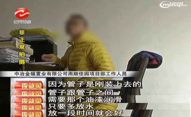 物业给出的解释:因为二次供水的管道是刚装上去的,管子与管子之间需要油漆润滑,只要多放水,过一段时间就好了,但也没给出具体时间,并且这个水费谁来承担也不清楚。住雨顺家园的业主们希望,有关部门能给水质做个检测报告。(微马鞍山)