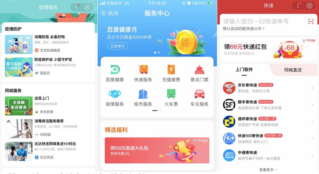首先就体现在,现有的所有本地生活服务除了自身生态内的产品例如百度地图、百度健康外,大部分服务都是和外界的合作,例如快递服务是已有快递公司入驻,票务服务是和携程的合作。