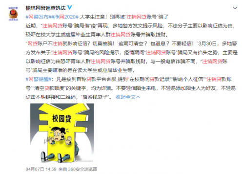 日前,教育部全国学生资助管理中心发布2020年第1号预警,就近期“部分学生接到‘注销助学贷款账户’电话,恐吓学生不注销则会产生不良影响”事件进行预警。360借条安全专家安燃提醒,目前国家助学贷款没有政策变化,学生群体切勿轻信上当,谨防此类骗局。