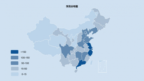 从学员分布图来看,大家来自五湖四海,国内除了西藏暂时没有学员以外,其它各省市自治区,乃至台湾已经全覆盖,我们非常欣慰的在2019年结识了四位来自台湾的同胞。同时也有越来越多的海外华人、华侨加入商学院。