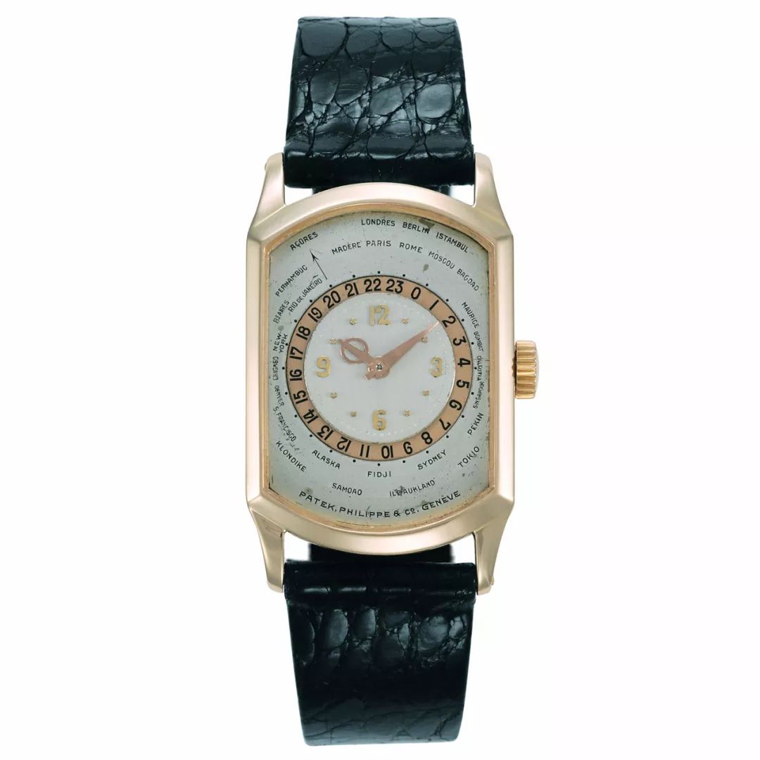 百达翡丽在1937年推出第一代矩形表壳的世界时腕表Ref.515,表盘外缘刻有代表24个时区的共28个城市名。