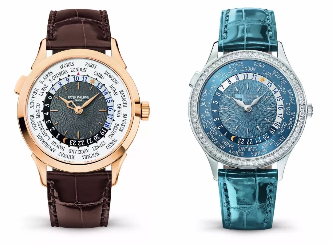 目前,百达翡丽在产的世界时腕表包括,男款的5230(下图左)和女款的7130。其中,5230诞生于2016年,设计团队从百达翡丽博物馆的一枚藏品中获得灵感,采用“南十字星”造型的镂空时针和菱形轮廓分针。