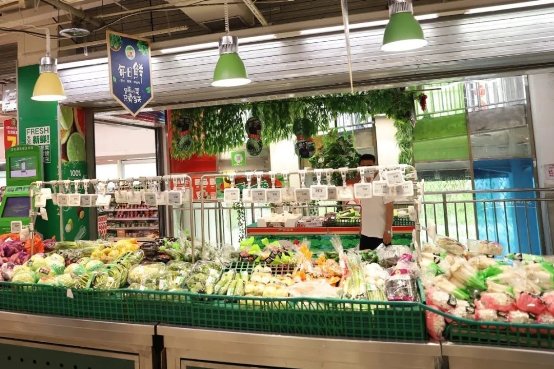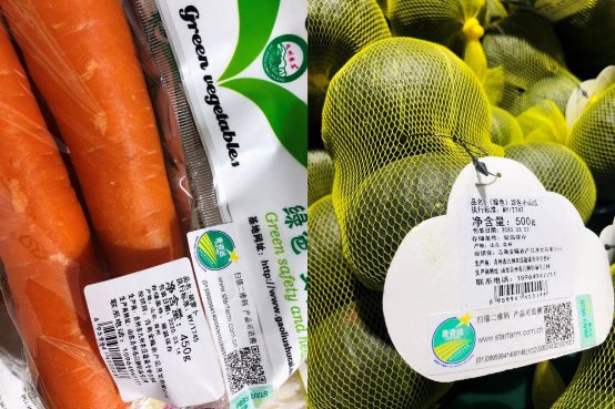 在物美可以购买到一周七色不同颜色包装的“每日鲜”净菜,因为采销系统以销定产等功能,可以基本在当日售罄,做到新鲜叶菜只卖当天。在麦德龙购物时,消费者只要扫码生鲜商品的二维码,就能获得从生产到加工运输的相关信息,包括化肥农药使用情况、运输温度等细节。