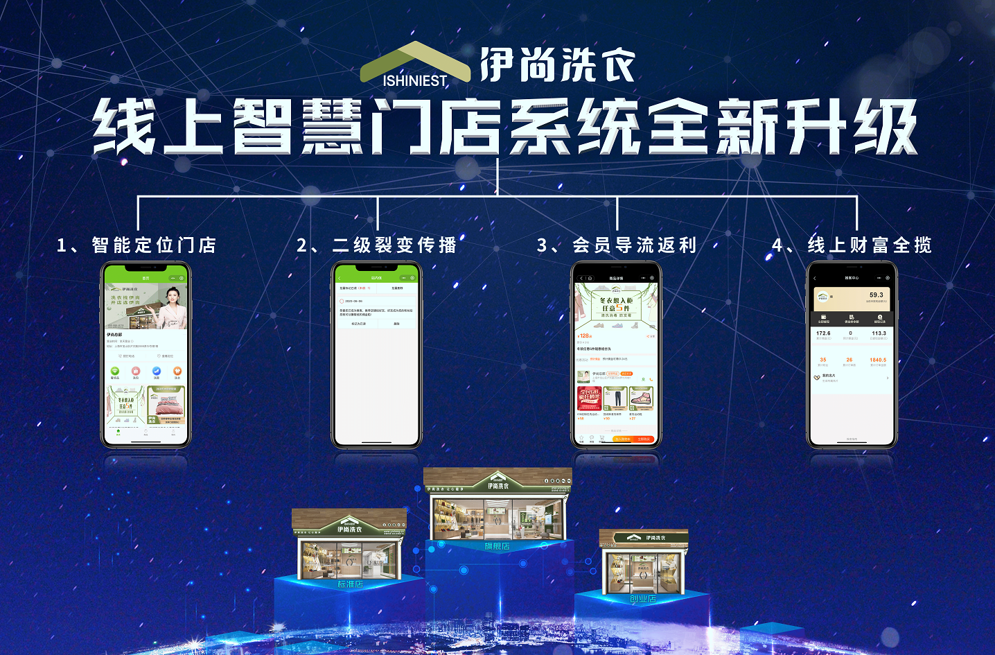 成熟的线上线下技术,便捷的收衣送衣服务,完善的加盟管理体系,伊尚洗衣实体店+O2O洗衣模式为消费者提供便捷高效的洗衣体验,赢得市场,成就品牌。