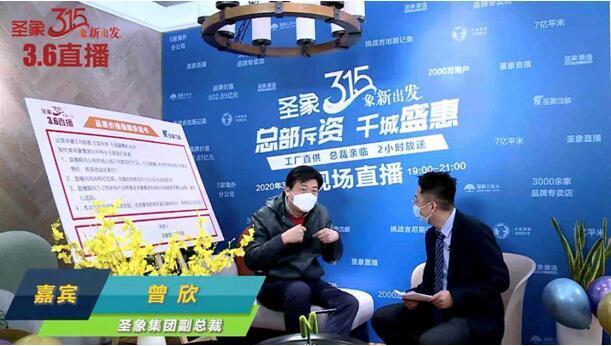 圣象地板是众多家居企业中首先考虑到疫情期间用户置家需求,并迅速付诸行动的品牌。2020年3月6日19:00-21:00,圣象“315象新出发”活动的第一弹全国性直播盛大开启,联动40个独立直播间并机纳客,2小时内,4轮红包雨、4大竣工礼、千元总裁加持返现礼、以及无数拿到手软的转发礼,共计33500份大礼全部放送完毕;圣象集团副总裁曾欣也亲临直播间签下承诺书,为所有圣象的粉丝送上诚意满满的大礼,为圣象“315象新出发”的这一阶段完美收官。截至3月6日21点58分,圣象累计各类订单成交27925单。