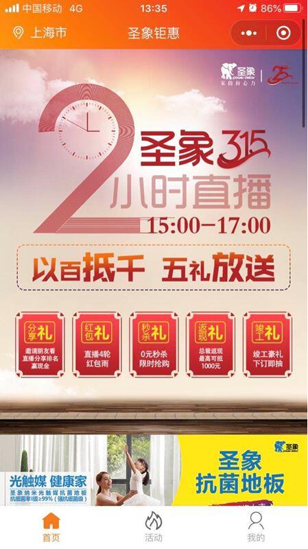 也正是因为3.6活动的空前热度和反响,圣象地板决定应用户呼声,再度在3月15日加开一场更为惊喜的线上直播。除了形式的升级之外,圣象集团董事长陈晓龙也将亲临现场,为用户带来更多意想不到的福利,分享礼转发即得,红包礼4轮派送,秒杀礼0元限购,返现礼最高1000元,竣工礼下订即抽,“以百抵千,五礼放送”,你心动了吗?