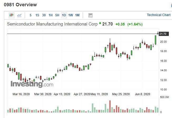 尽管如此,中芯股价仍持续上扬,自今年以来,该公司股价上涨了 78.8%。于周三 (17 日) 港股收盘时,中芯股价上涨 1.64%,报每股 21.70 港元。