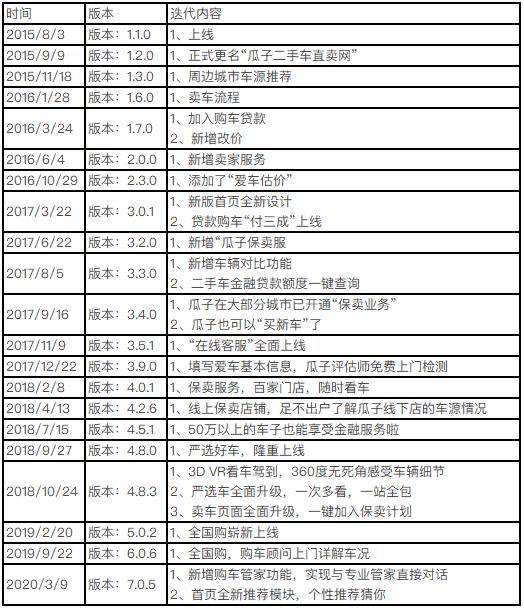 瓜子二手车的产品迭代目的非常合理。在导入期注重把控车源,在成长期提高服务质量,提升交易质量。瓜子的迭代路径也是其致胜的关键。