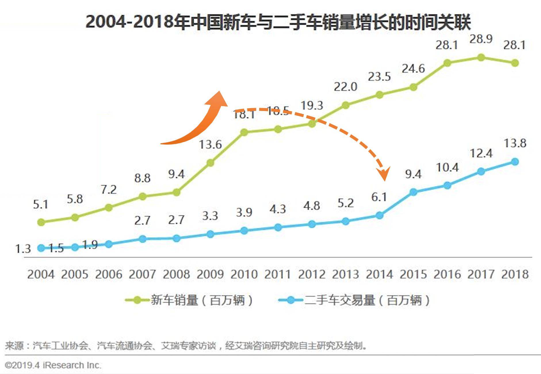 基于2013年新车市场的跳跃式增长,为2017年二手车市场做了准备,加上限迁的解除,2017年二手车交易额迎来34%的增长。