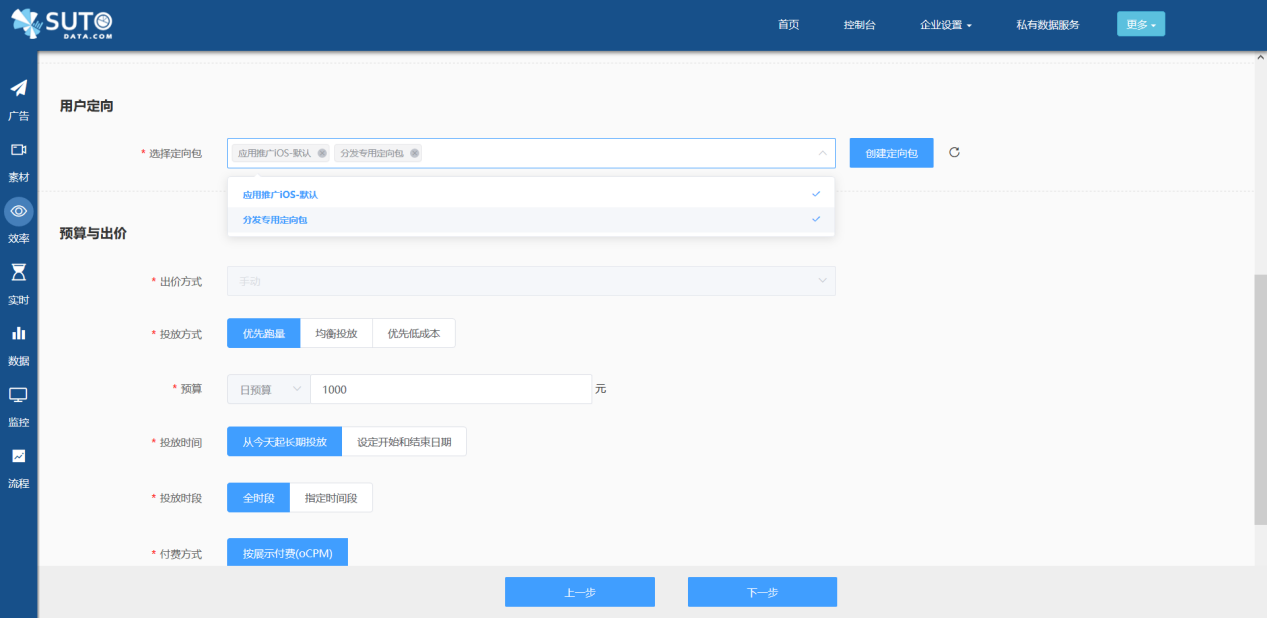 当数据得到有效整合时,就可以实现规模化的快速复用。例如,投放人员根据真正的量化的效果数据,一键复用定向模板、素材和广告位快速搭建广告。