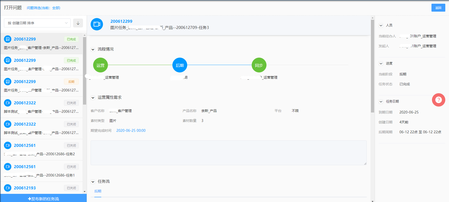 系统采用流程模组化设计,可根据不同的业务需求自定义生产流程;指定流程后各环节均会绑定流程经办人;优化师通过素材生产管理系统,创建不同类型的素材需求任务,查看各环节工作进度及工作成果。素材同步媒体后,系统将提供各环节的效果数据。比如某个员工所参与生产的全部素材平均点击率是多少。为落实工作流程,提升工作效率,工作成果数据化提供有力保障。
