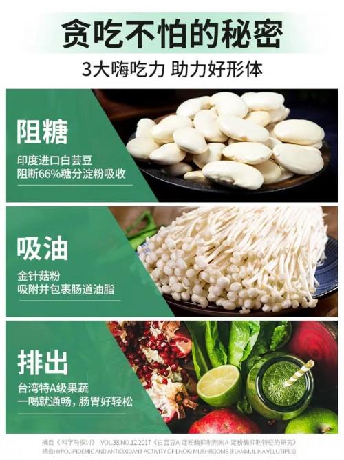 姿美堂以创新理念,抓住女性“爱吃”“怕胖”的痛点,推出嗨吃酵素,帮助女性在享受高热量美食的同时保持身材。嗨吃酵素选用印度进口白芸豆,能够有效降低肠道内淀粉酶的活性,减少人体对糖分、淀粉等碳水化合物的吸收。嗨吃酵素还含有金针菇粉,通过包裹并吸附肠腔内过多油脂,阻碍肠道对油脂的吸收,防止因过度饮食所造成的脂肪蓄积,促进新陈代谢。除了阻糖和排油,嗨吃酵素由62种台湾果蔬发酵,多重共生菌种,促进肠道蠕动,快速排出肠道油脂、垃圾、毒素。