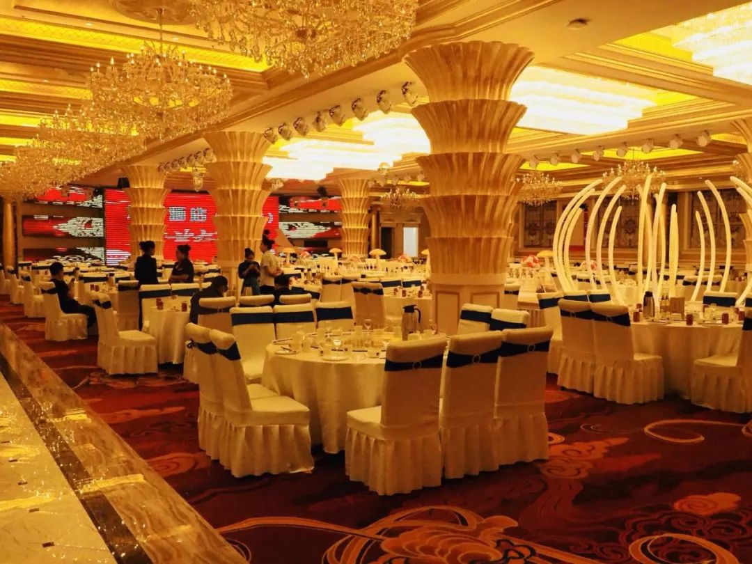 顺着金灿灿的走廊走啊走,突然别有洞天,宽敞起来。原来,这是乐厨推出的第一家线平米的酒店,共分割为一个40桌的大宴会厅、一个15桌的小宴会厅、17个雅间、一个散客厅。装修设计的巧妙之处在于,大小宴会厅中间是可以活动的隔断,推开隔断,就可以“变身”为一个更大的宴会厅,同时起到55桌,加上雅间的线桌宴会的需求。