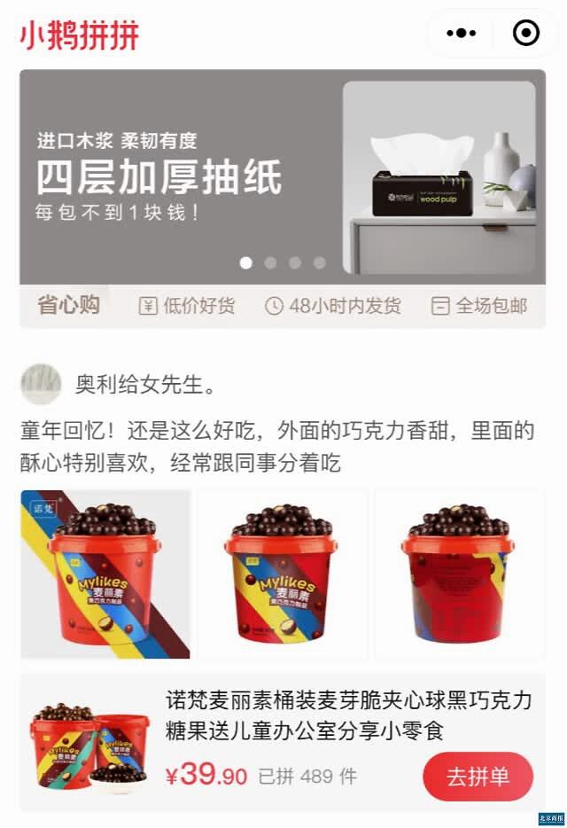 从最初的拍拍网到现在的小鹅拼拼,购物形式变了、操盘手变了、载体也变了,但腾讯自己做电商的心思没有变。5月7日,北京商报记者发现,腾讯上线了一款拼购模式的微信小程序“小鹅拼拼”,相比拼多多和京东旗下的京喜,小鹅拼拼的页面更简洁,社交推荐的氛围更浓。