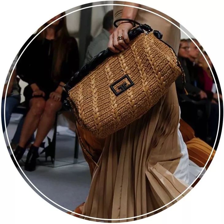 除了柔和的皮质手包,Clare Waight Keller还巧妙地将草编元素运用到了包袋上,打造出一种轻盈休闲的度假气氛。
