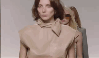 一开始听着躁动的嘻哈背景音乐,也许会以为走错了秀场。但当开场造型走出,那份从容和优雅,除了巴黎女人还能属于谁呢?柔软的无袖皮上衣泛着细腻的皮革光泽,和塔夫绸半裙相互映衬,精分的搭配美学不露痕迹。被设计成领巾的领口细节,带出了下一个伏笔。