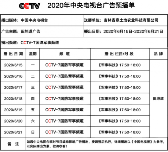 原标题:田坤道广告CCTV7持续播出,相信品牌的力量田坤道电视台CCTV7国防军事频道广告持续播出!