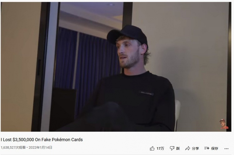 最近保罗为了回应这些置疑,前往芝加哥与卡牌交易所的人员鉴定。今天(1月14号),洛根·保罗本人证实,他确实买到了假货。他还发布了一段视频到油管上,标题为:“我在假的宝可梦卡牌上损失了3500000美元”,截止至本文发稿时,该视频已经160万播放,17万点赞。