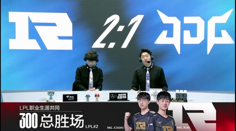 1月14日讯 LPL春季赛正在进行,在刚刚的比赛中RNG二比一击败JDG取得春季赛首胜,赛后Xiaohu和Ming达成LPL职业生涯共同300总胜场。