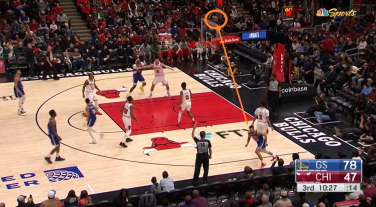 第3节比赛,库里溜底线接到球出手三分,这熟悉的跑位和节奏让他提前转身,但最近的糟糕手感又让他不放心地回头看了看,这球最后还是掉进了篮筐。