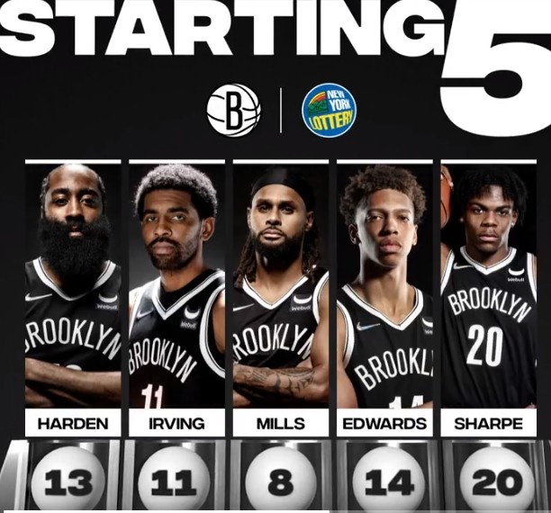 篮网首发如下:欧文、哈登、米尔斯、爱德华兹、夏普,和上一场对阵骑士相同。