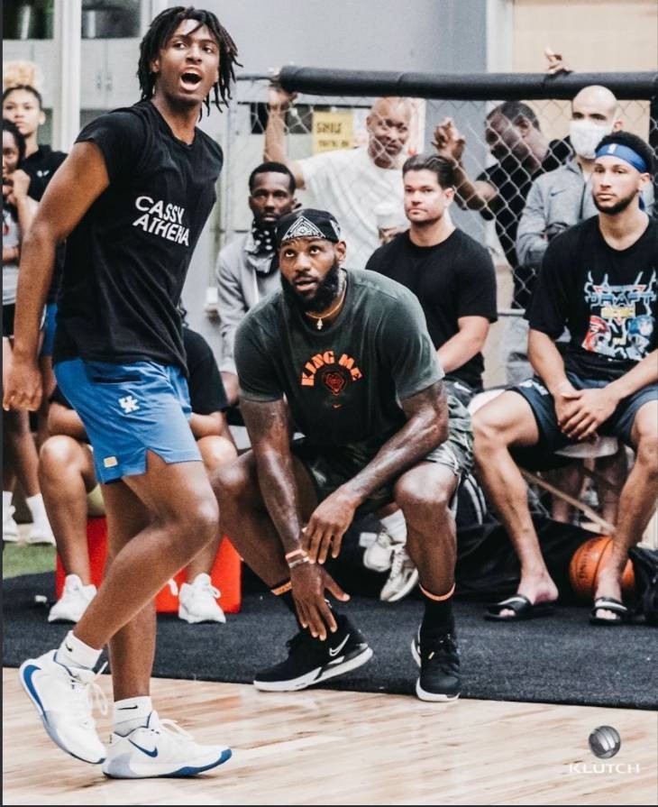 据悉,他们是在所属的体育经纪公司Klutch Sports组织的私人训练场内训练,詹姆斯与本-西蒙斯都是该公司旗下运动员,詹姆斯更是该公司的创始人之一,其主要负责人为詹姆斯的好友里奇-保罗。