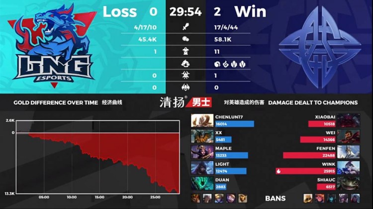 【17:00】ES中路强行越塔开团,LNG抓住机会成功反打打出1换2,随后推掉ES中路一塔。