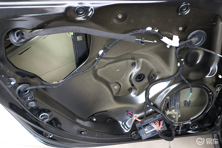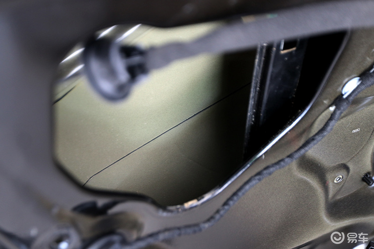 首先在加装喇叭前先进行隔音处理,然后先开始拆开门板,可以看到门板的隔音状态,没有没有任何隔音处理,只有薄薄的钣金,很容易产生振动,为此做隔音处理是非常重要的,既可以提高喇叭的效果,又可以降低风噪的传入。