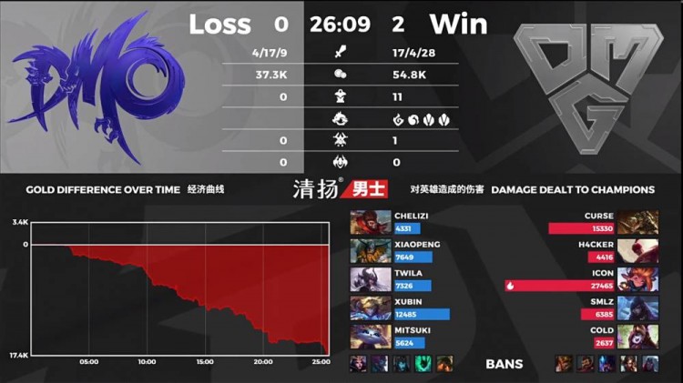【25:40】OMG冲上DMO高地,轻松击杀猴子和EZ后结束比赛。
