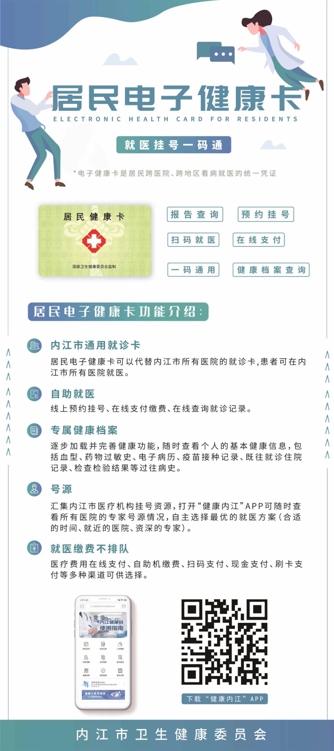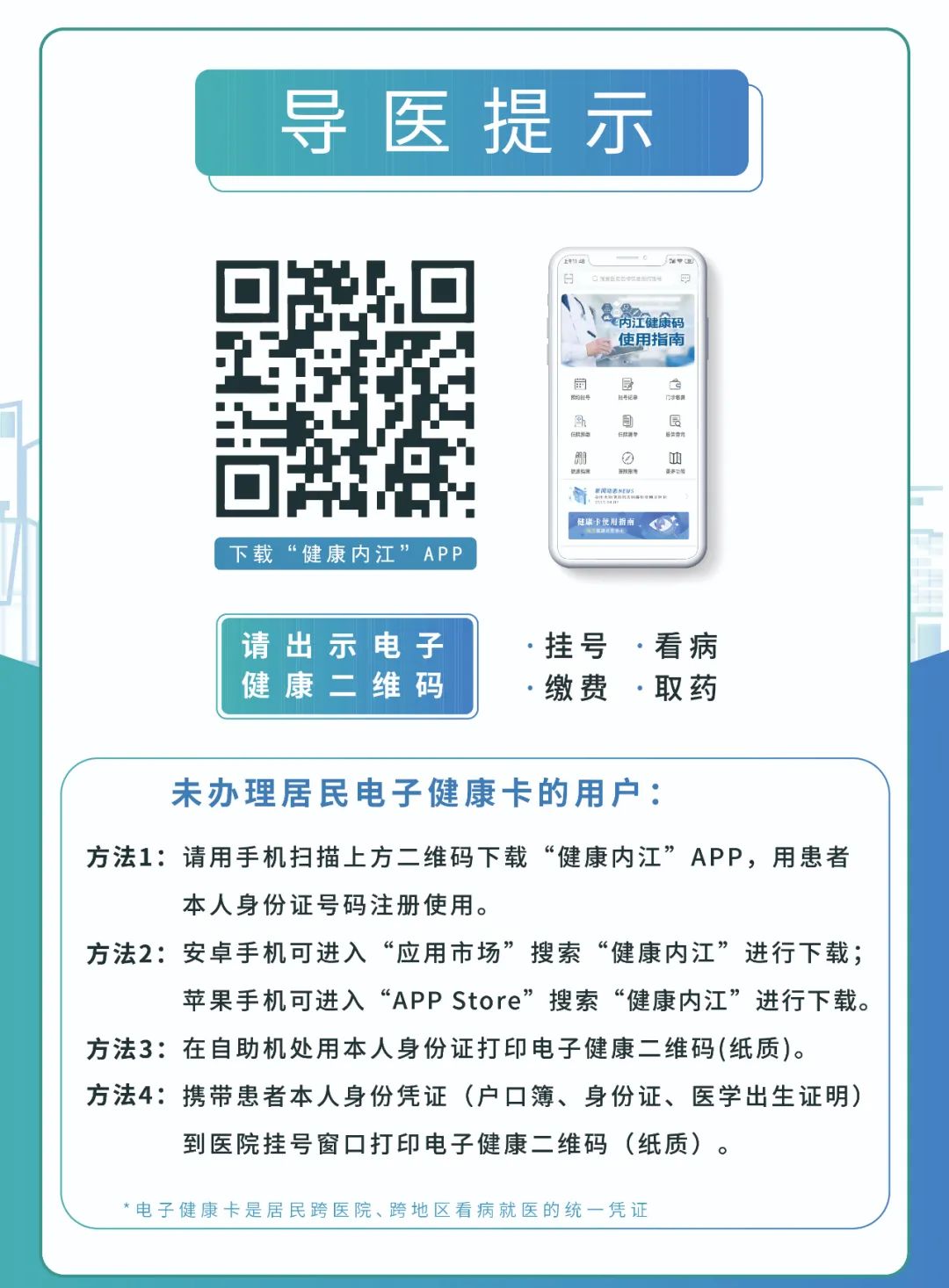 有了“电子健康卡”,意味着以后在内江市范围内,可以让你跨机构、跨区域看病!忘记或带错就诊卡,也没关系啦!