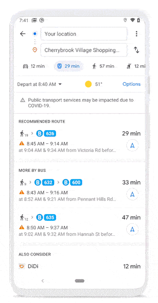 尽管新冠病毒引发的 COVID-19 疫病仍未在全球范围内得到完全有效的控制,但人们的日常工作仍免不了外出通勤。好消息是,谷歌刚刚为 Android 和 iOS 版本的地图应用引入了新的功能,以便用户能够及时知晓相关信息。搜索巨头在一篇博客文章中写道:“当您发现可能受 COVID-19 影响的公交线路时,谷歌会提示来自当地交通机构的相关警示信息”。