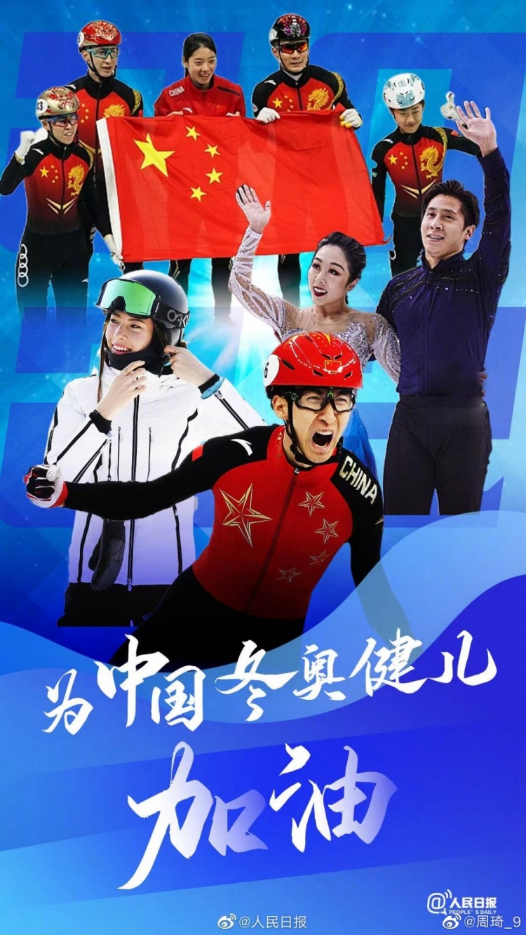 1月30日讯 中国男篮球员周琦今日更新微博,为即将出征冬奥的祖国运动员加油打气!