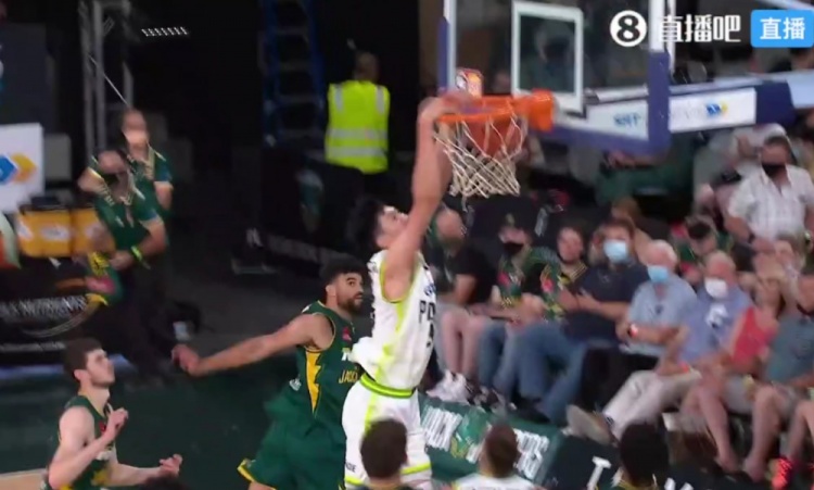 凤凰进攻,阿法借周琦掩护突破内线,周琦顺下接到高抛双手挂筐暴扣,并造成对手犯规。