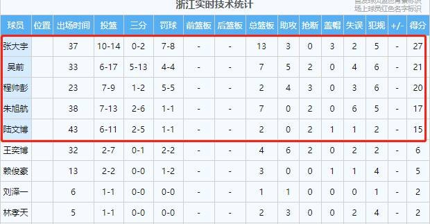 这一场可谓是起起伏伏,双方上半场打得难解难分,而在下半场风云突变,浙江一帮“首发匪徒”疯狂发力,最终帮助他们大胜对手。