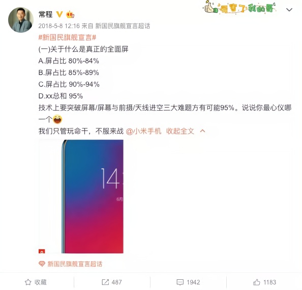 除了高调跳槽之外,常程的另外一个槽点就是老爱碰瓷小米。也有的童鞋说了,这可能也是常程最肖似雷军之处,为了公司产品,扯得下面皮,各种碰瓷比自己市场份额高的竞品。