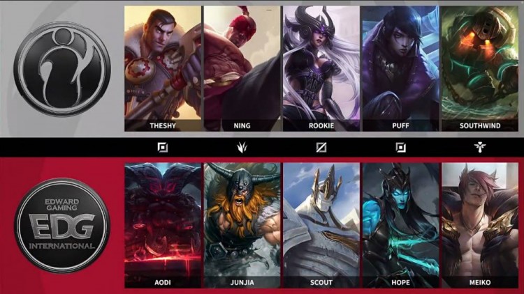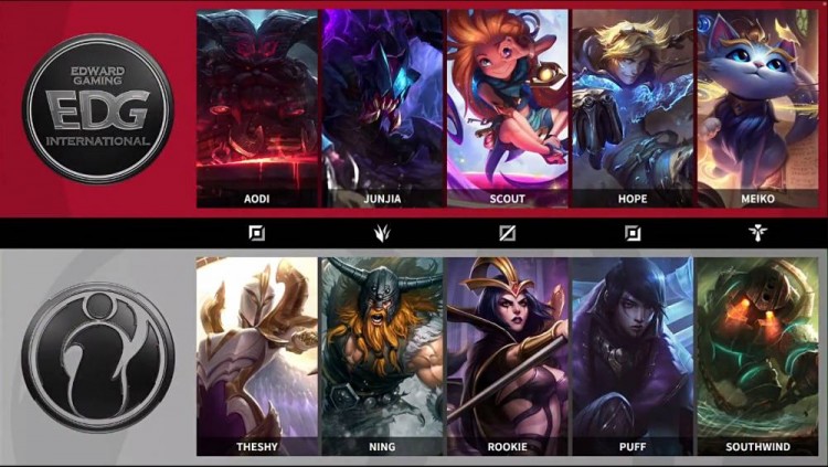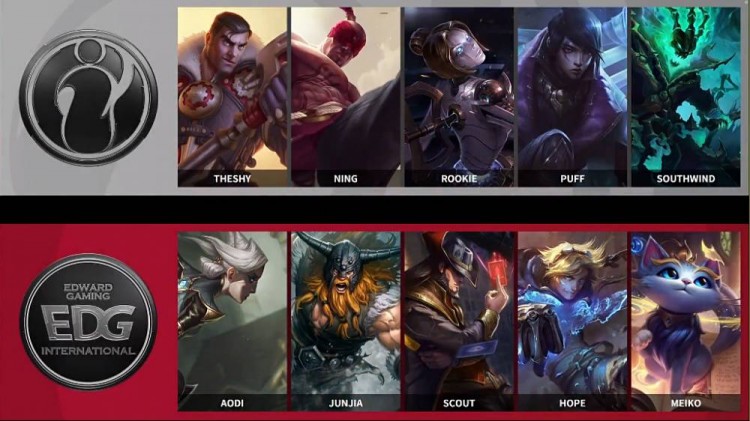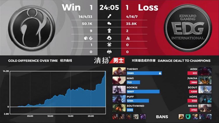 【14:50】IG妖姬再次单杀EZ。随后IG强开峡谷先锋,EDG五人来团,IG中野先被击杀,随后IG妖姬在上路想杀佐伊未果,EDG雷克赛带悠米击杀妖姬。