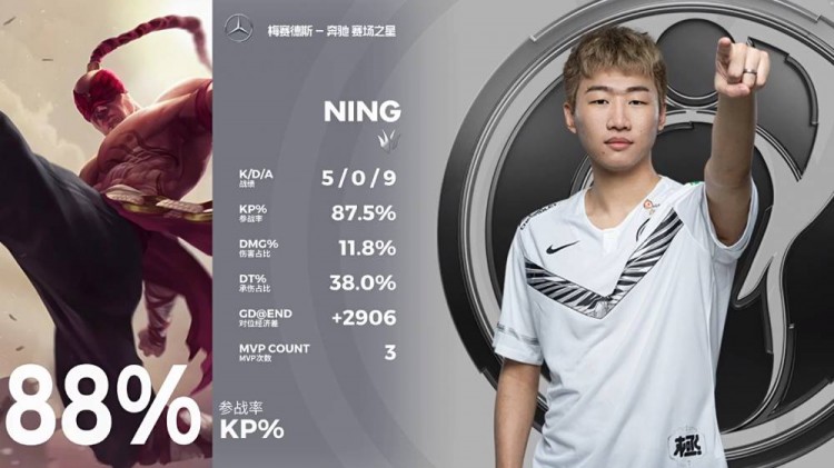 【10:40】IG盲僧上路强行越塔,配合杰斯伤害完成击杀。