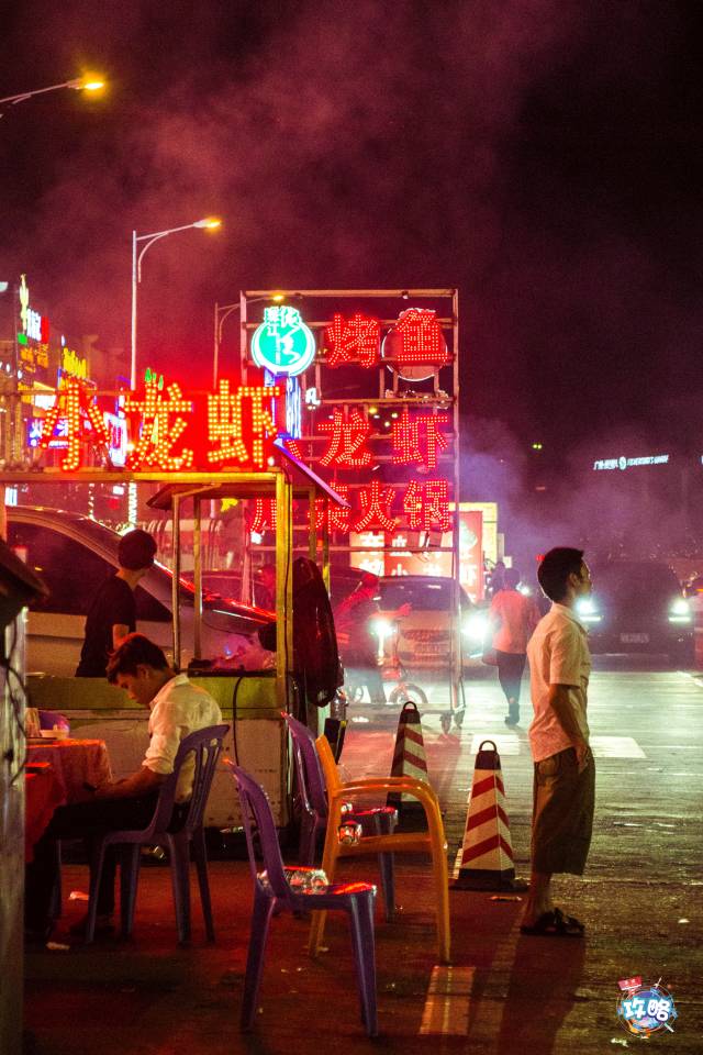 番禺的洛溪食街是一条热闹的宵夜街,档口一般都会开到4点多。因为生意竞争大,常看到店员大声喊客:“靓仔,小龙虾45蚊一斤,要唔要入黎坐下(帅哥,小龙虾45元一斤,要不要进来坐会儿)。”