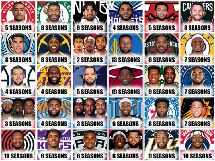 1月19日讯 近日,美媒盘点了各队目前队龄最长的球员。