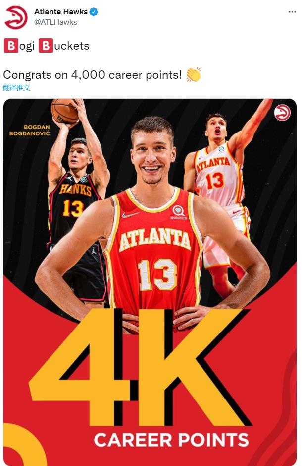 2月9日讯 今天,老鹰战胜了步行者队,在这场比赛里,博格丹-博格达诺维奇的生涯总得分达到了4000分。