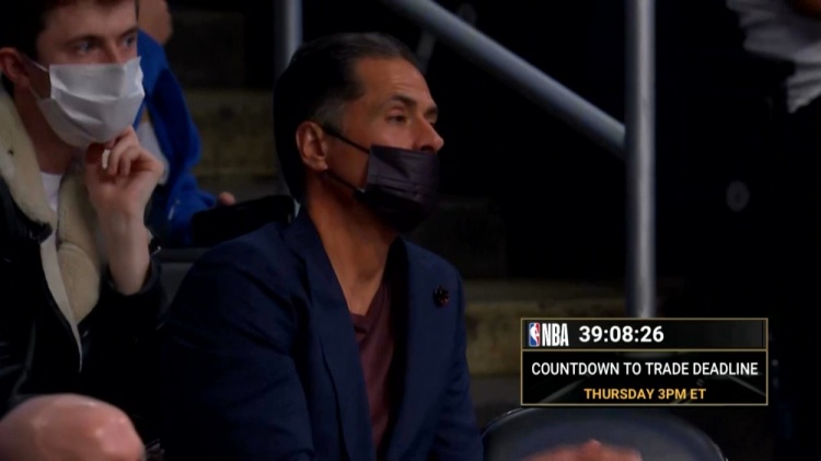 转播镜头在节间给到了神情严肃的湖人GM佩林卡,并且旁边还给出了距离交易截止日仅剩39小时8分26秒的时间。