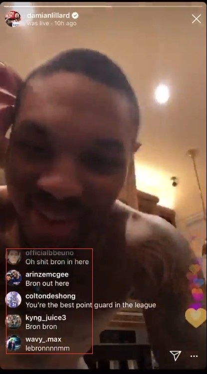 2月9日讯 今日,开拓者球星利拉德在Ins上直播。